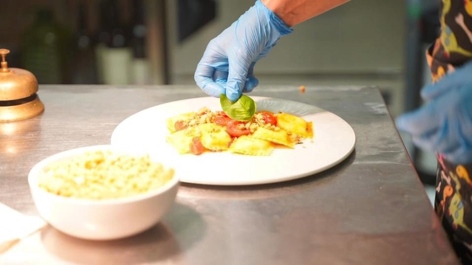 • Ravioli ripieni di radicchio e Monte Veronese con fondo di verdure e castagne.